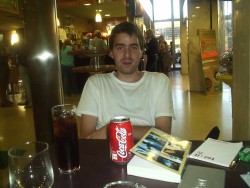 Meet James at Vauxhall. Bumped into Rachael Spratt. She looks fucked up. Couldn't get a tube to Tottenham Hale. Got bus then Taxi to Liverpool Street . Got to airport. Bought books. Struggled not to say bomb. Tom told lady next to him on plane that we was a Waterloo station left baggage destroyer.